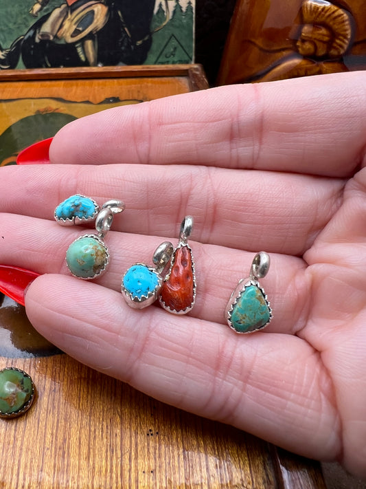 Mini Genuine Turquoise and Coral Pendants