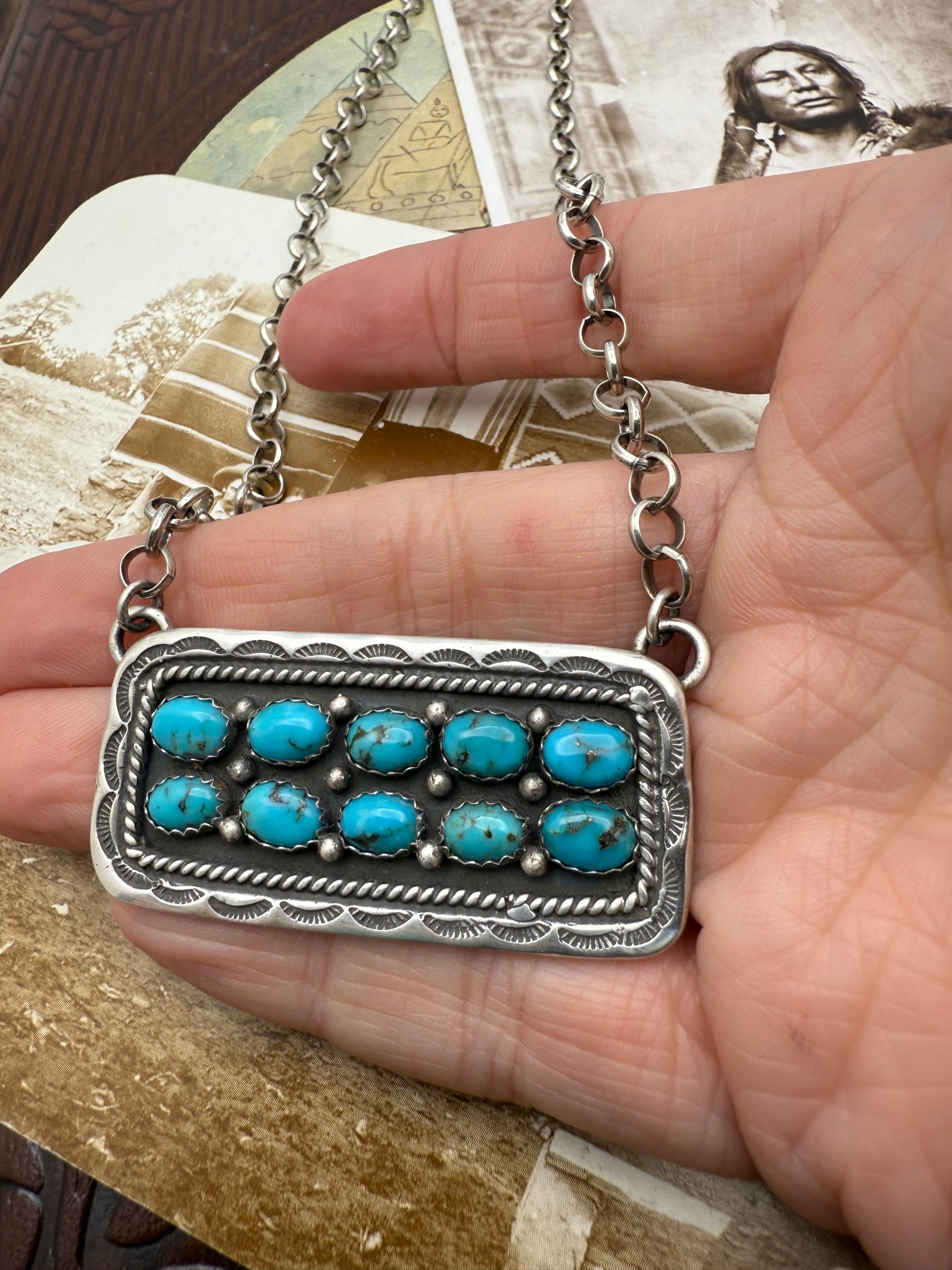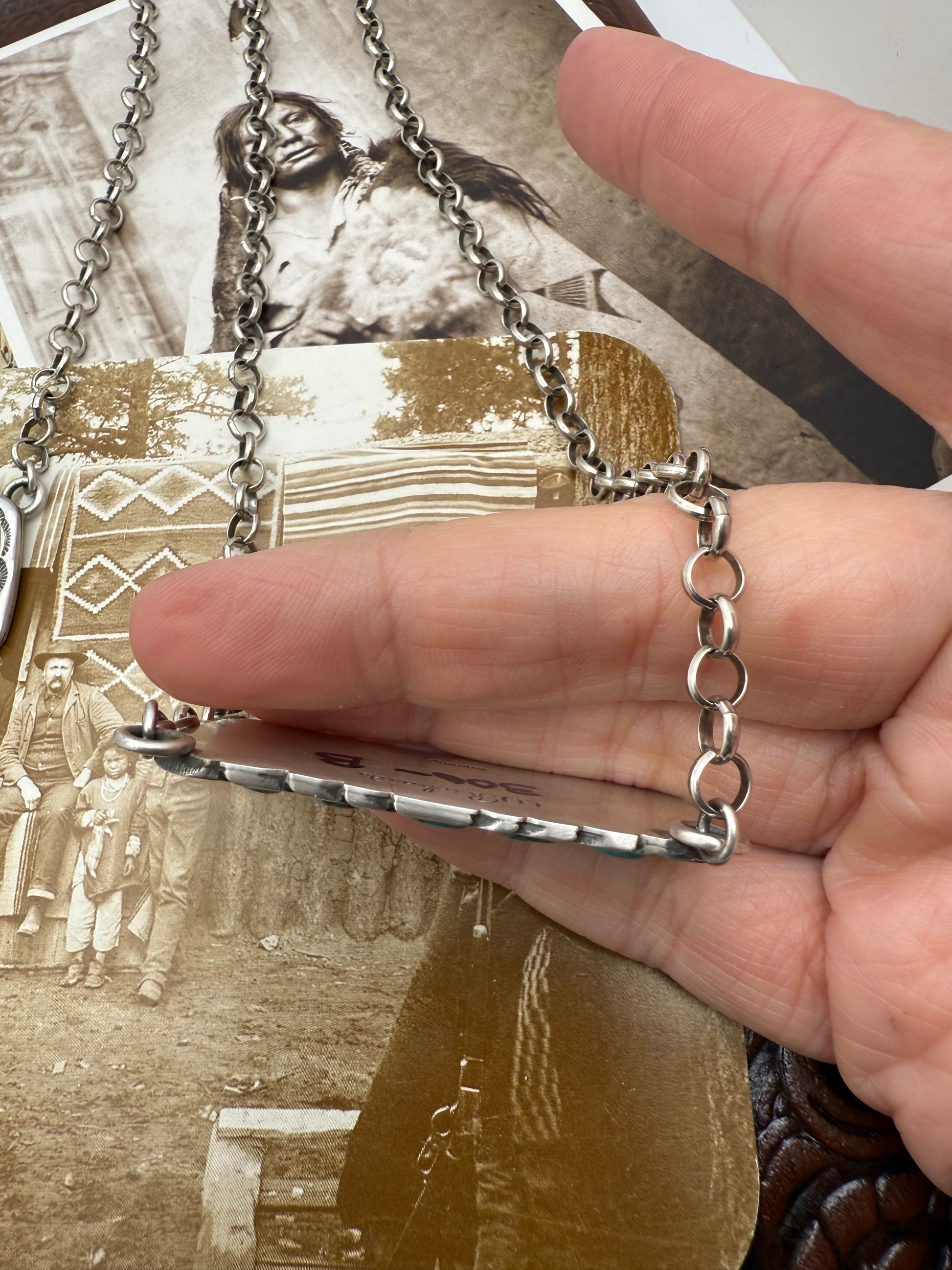 10 stone handstamped bar necklace with 20” rollo chain easy to layer and to adjust shorter