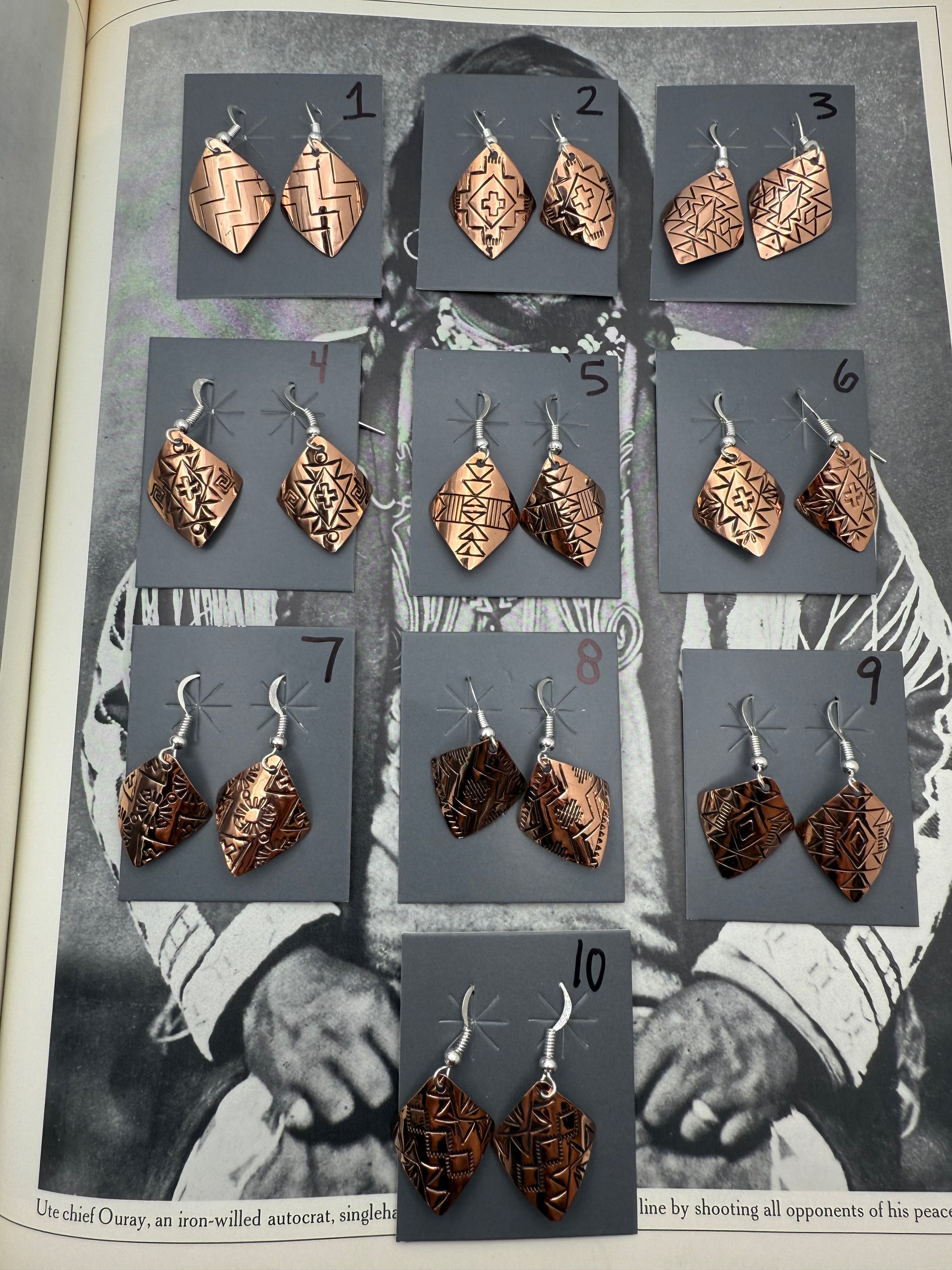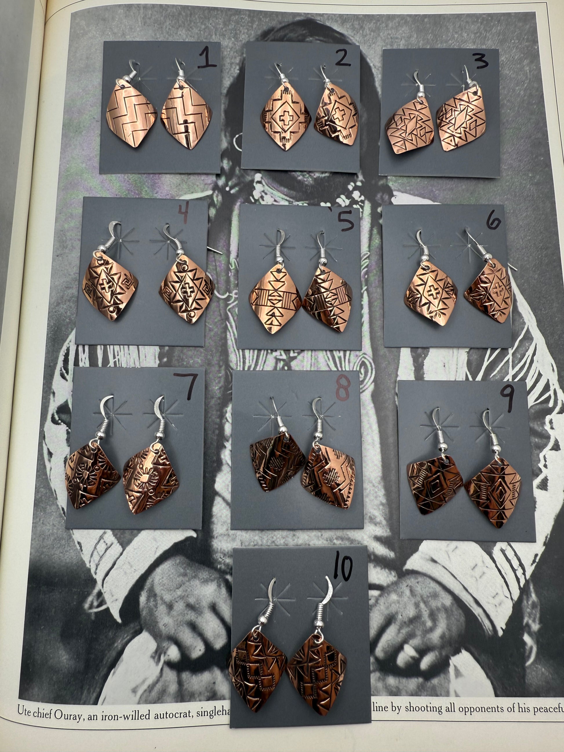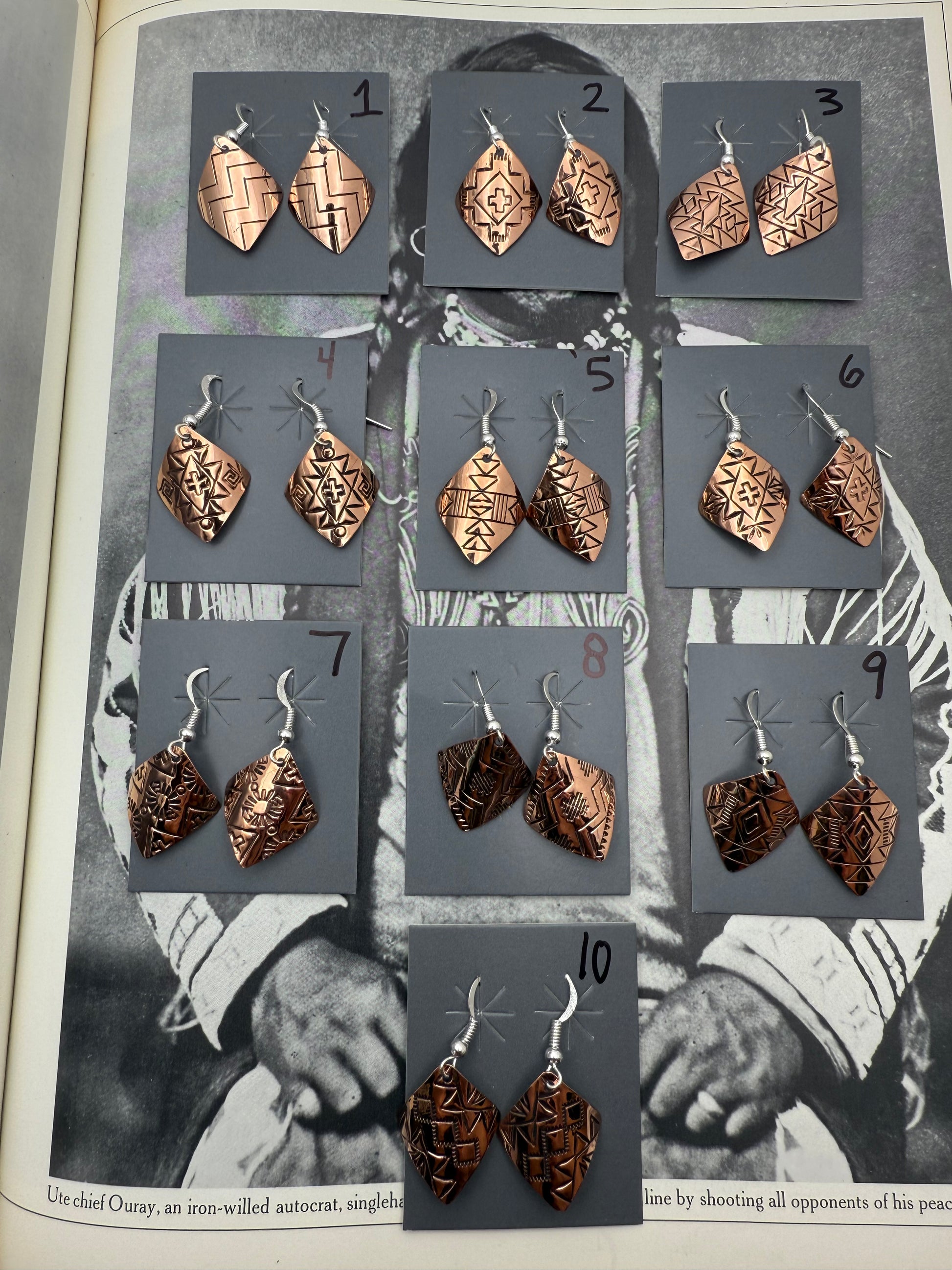 DOORBUSTER Stamped Copper Diamond Domed Earrings