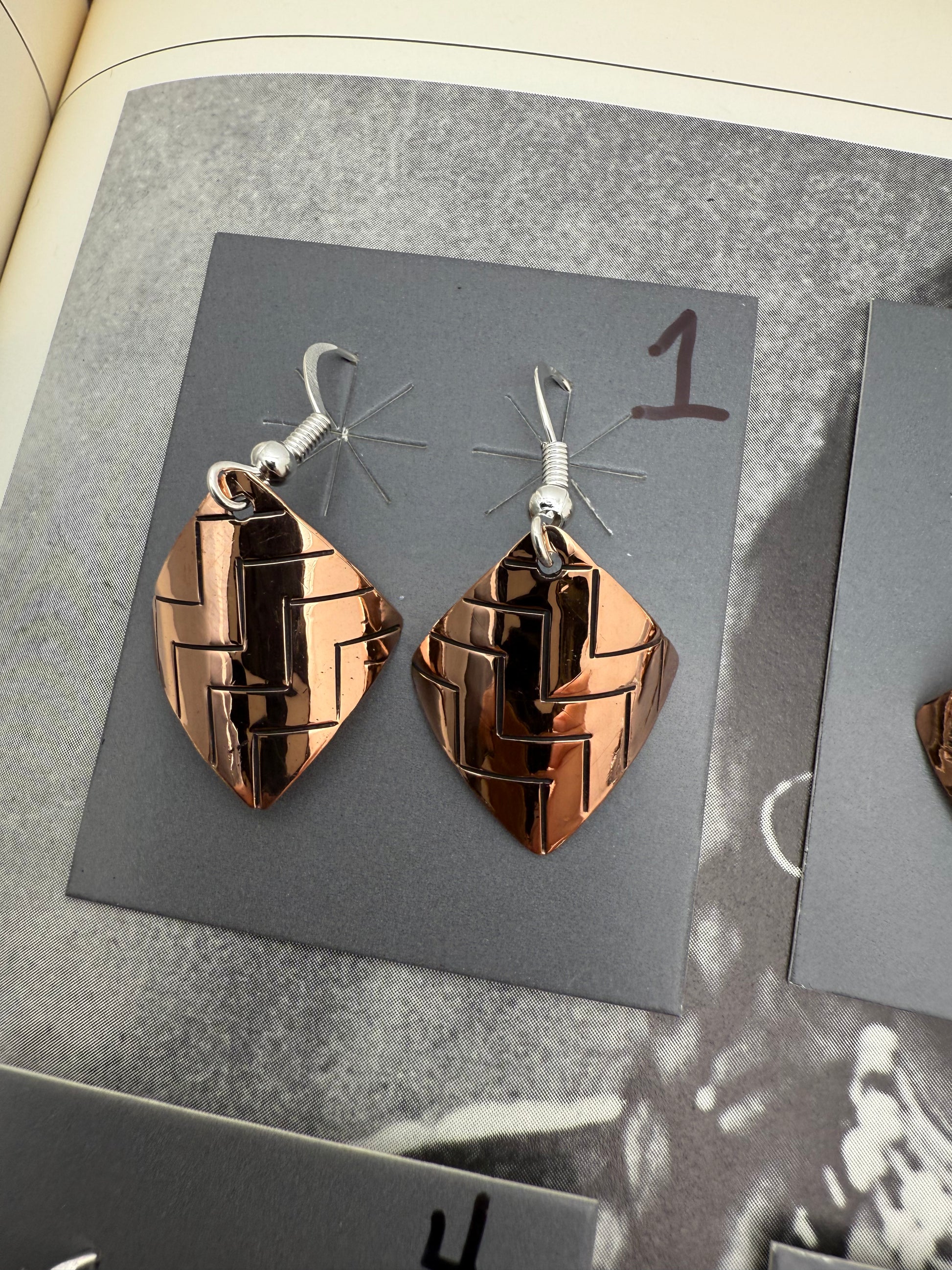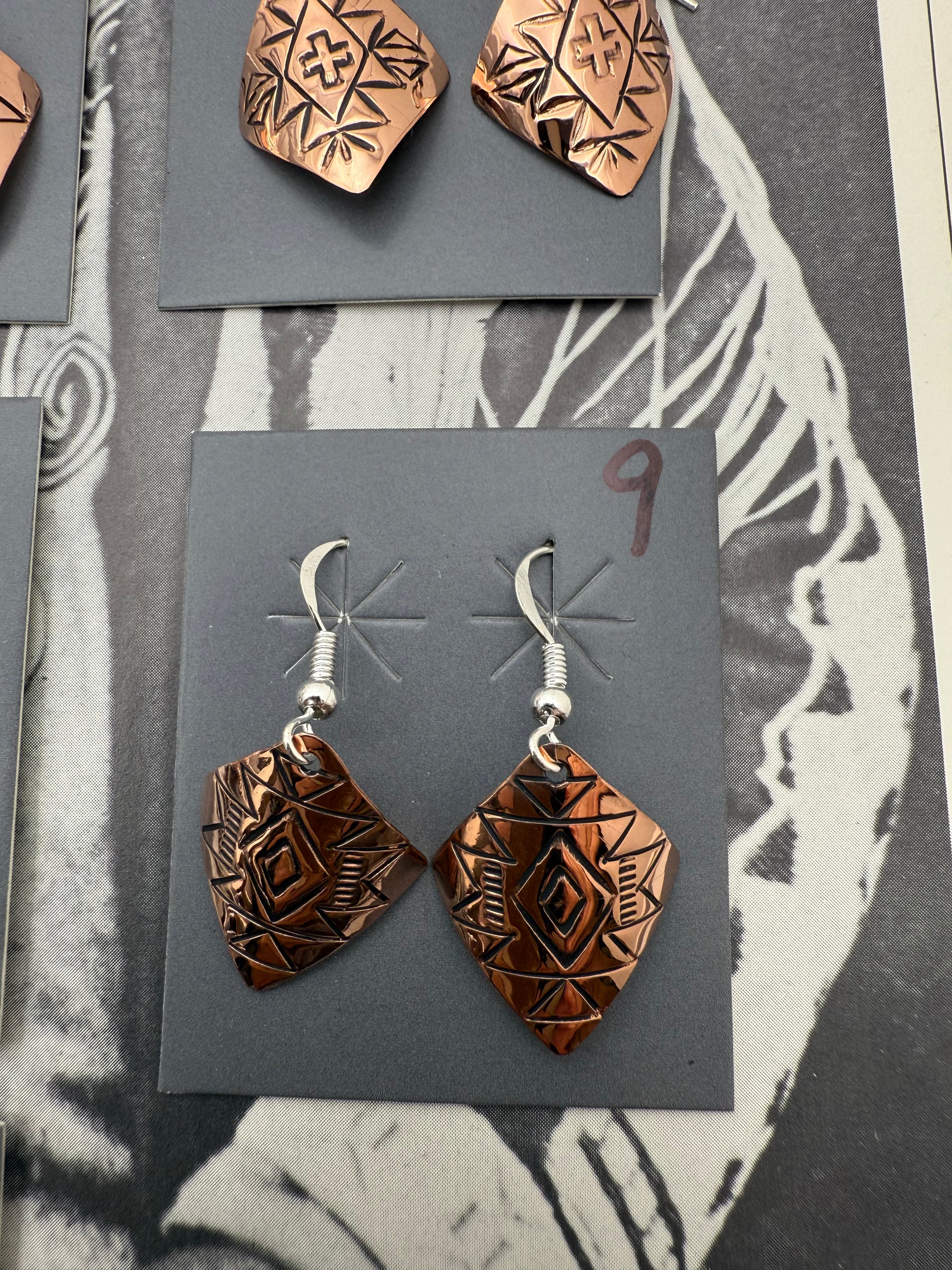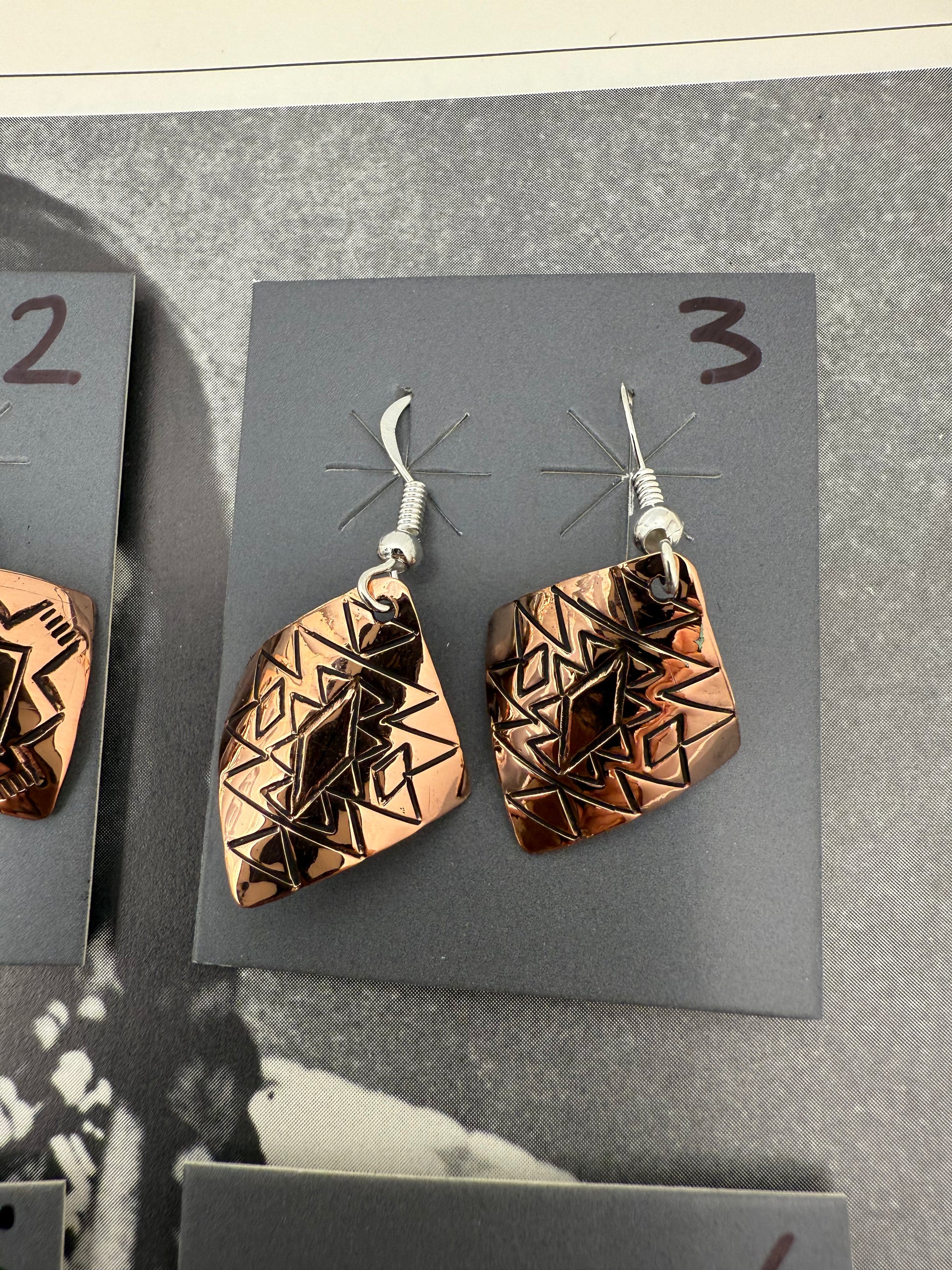 DOORBUSTER Stamped Copper Diamond Domed Earrings