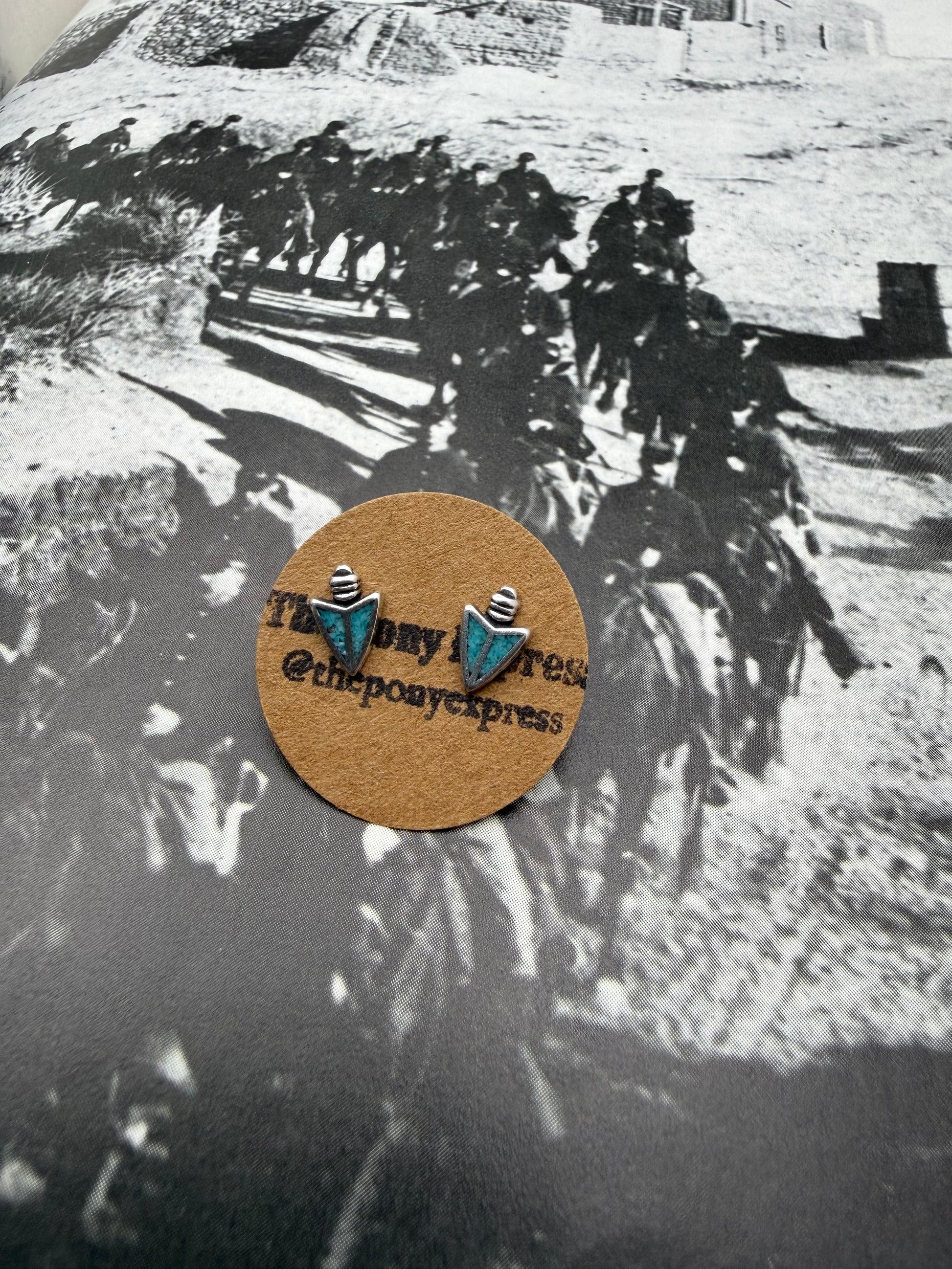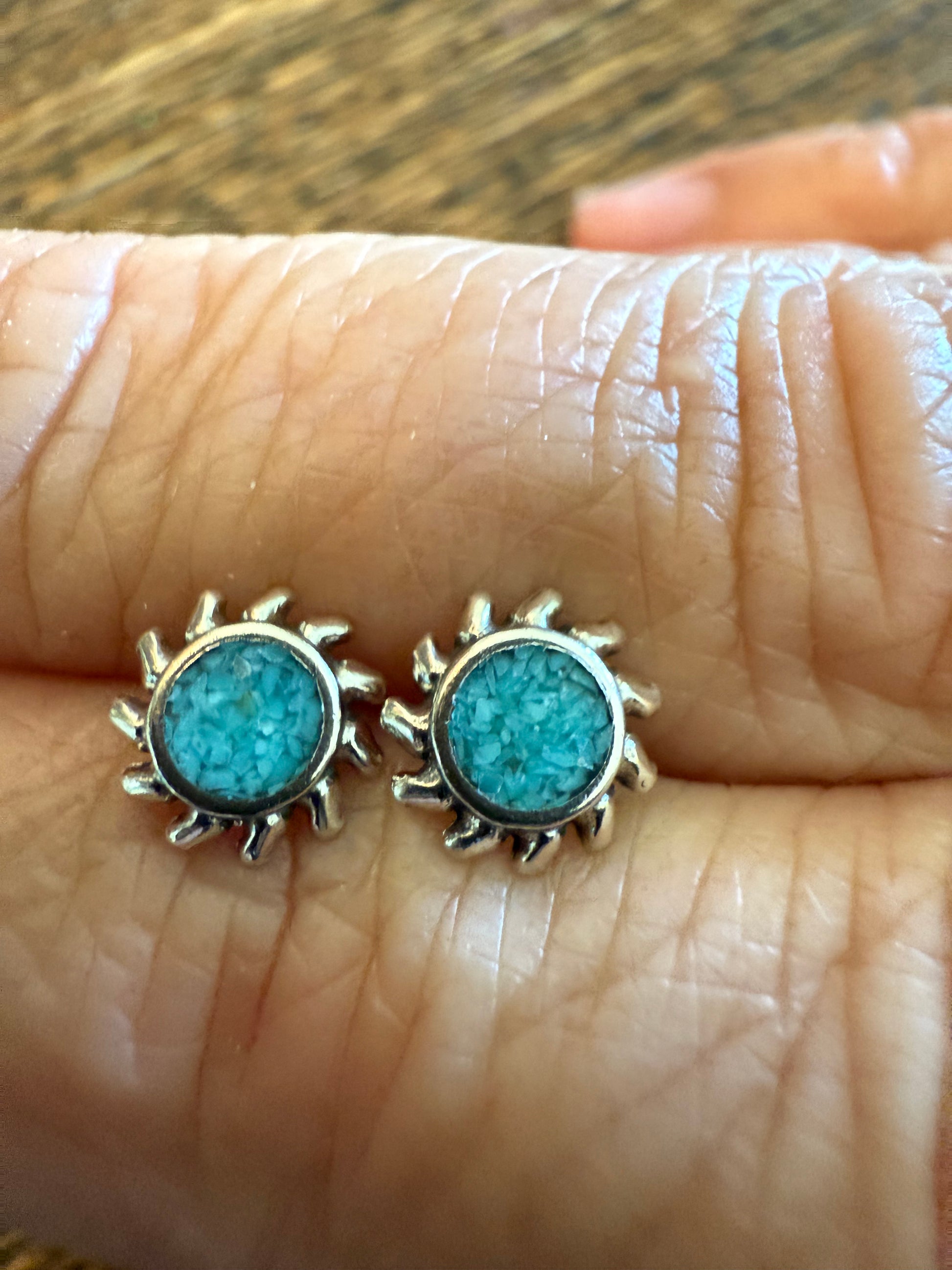 Studs are assortment Crushed inlay with turquoise and co- ral , opal , jasper ,