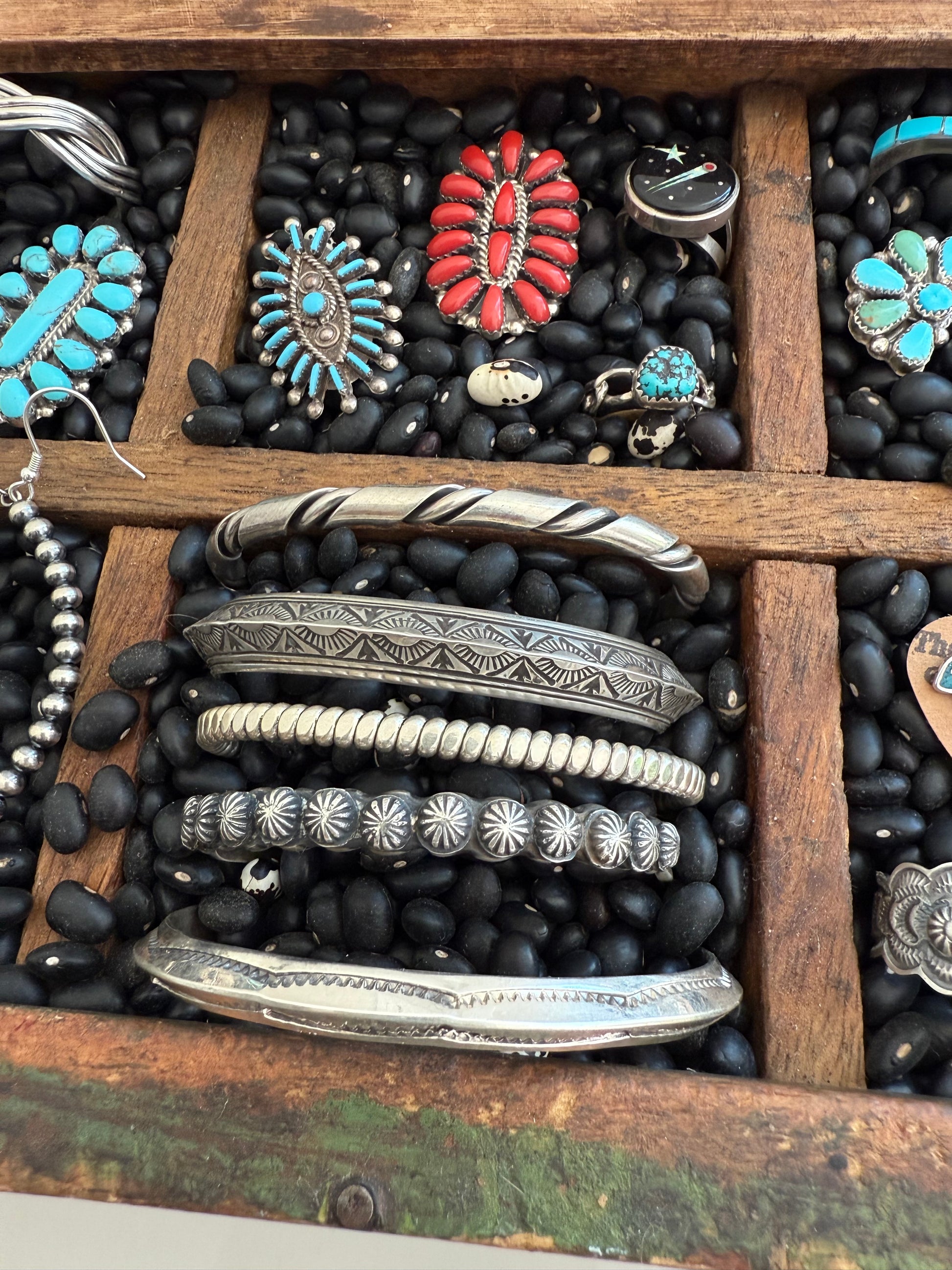 Super comfortable but also makes a statement. This is a must have in everyone’s collection! Matches perfectly with the cluster studs. Slim Split shank for a super comfortable fit. True to size! Sterling silver Native American made in the USA.