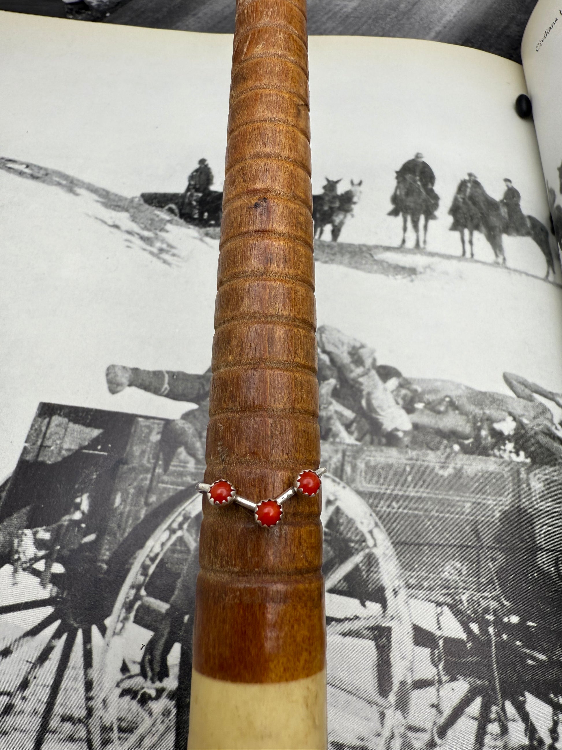 Coral 3 Stone Dainty Ring