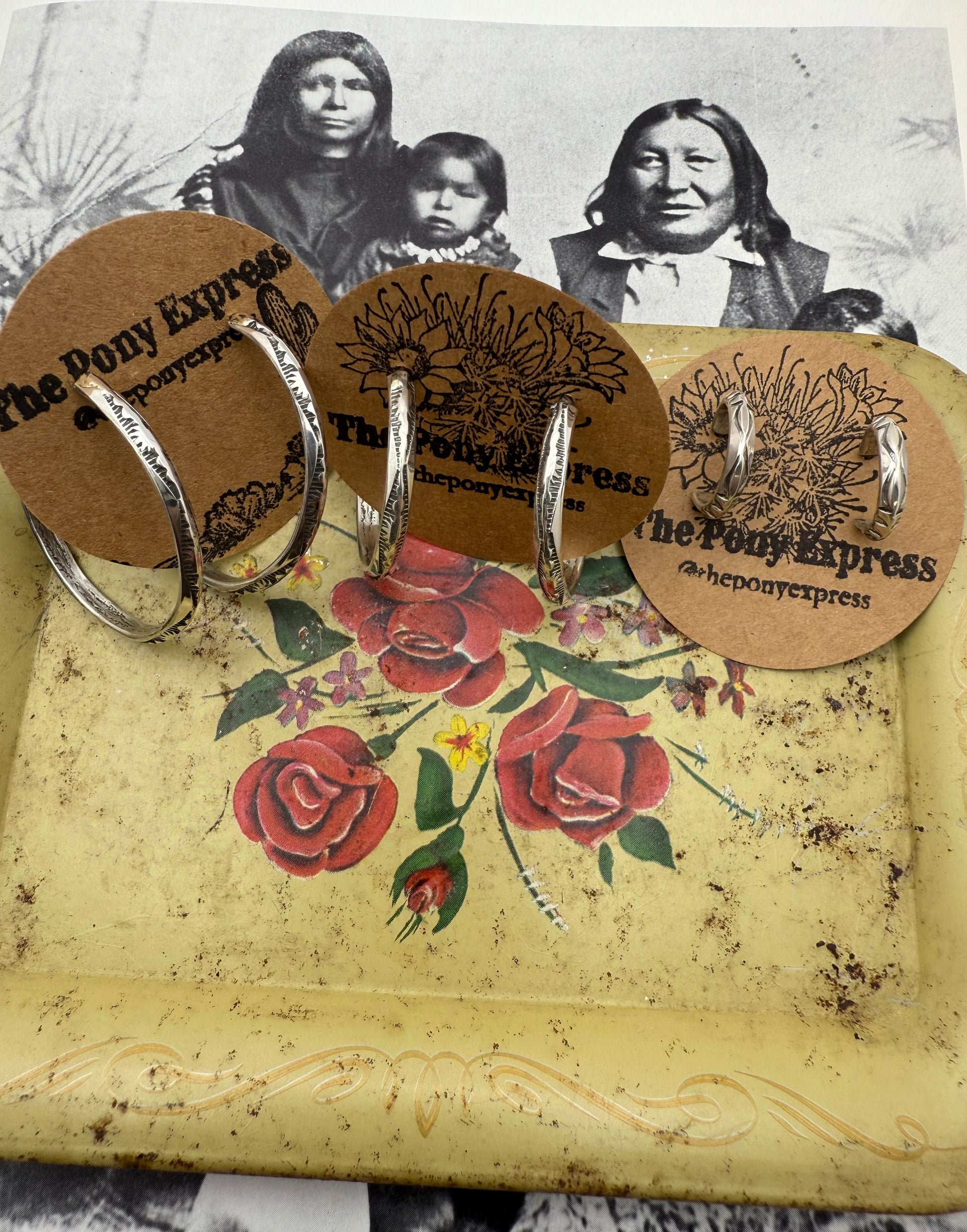 Native American Medium Hand stamped Hoops