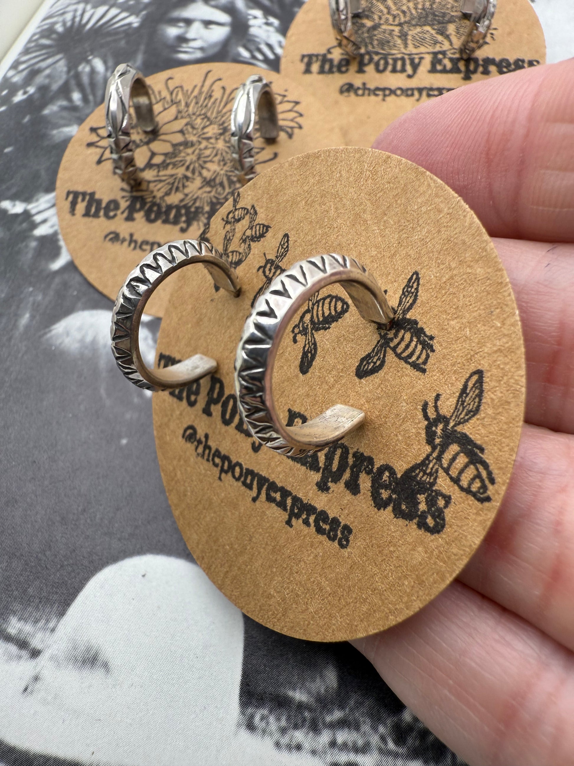 These are the all day every day hoop! Carinated hoops with hand stamped designs. Super comfortable to wear . Made by Native American silversmiths.