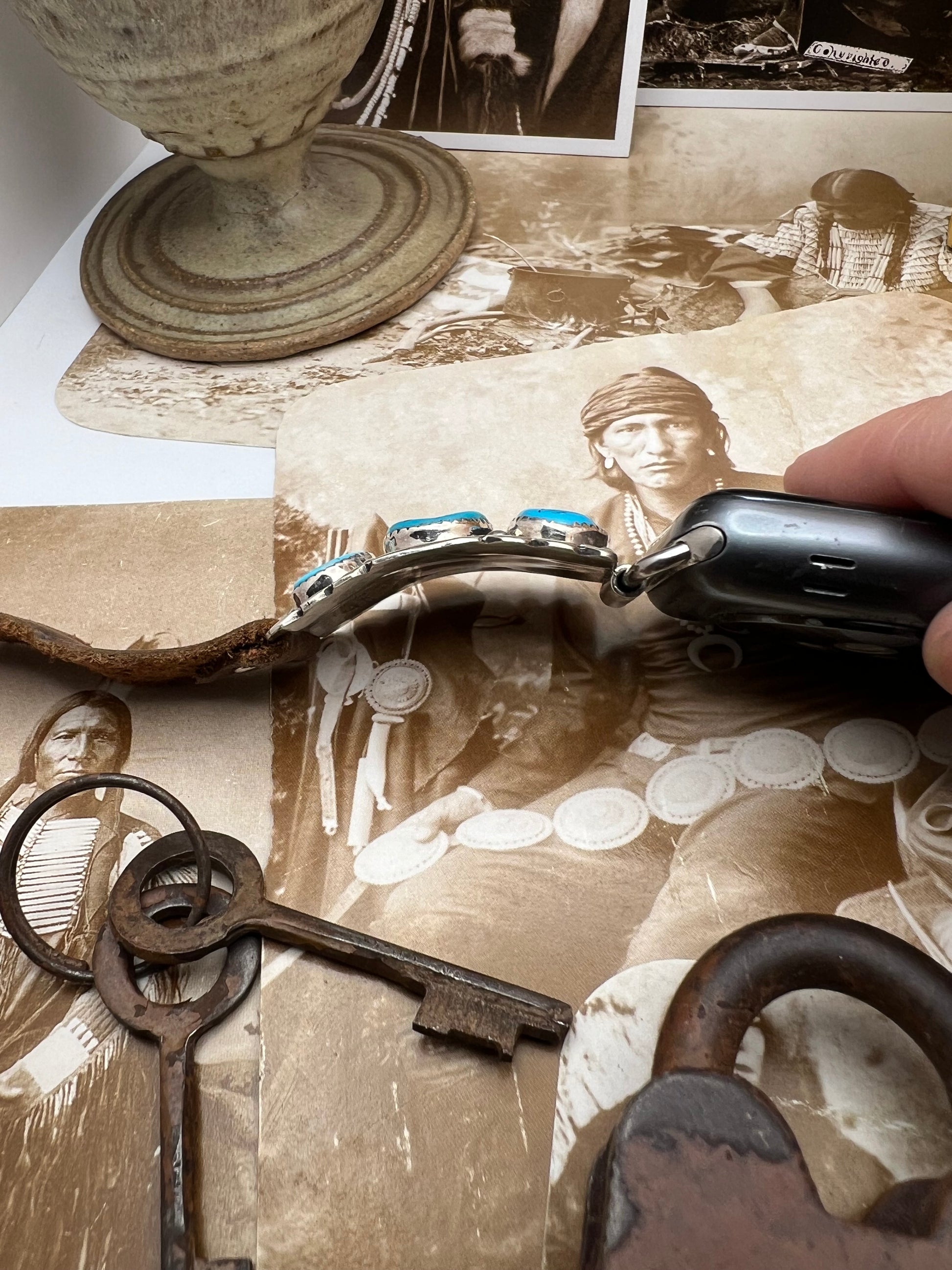 These are a fun transformation from a traditional watch tips. These are Native American made sterling silver with genuine turquoise