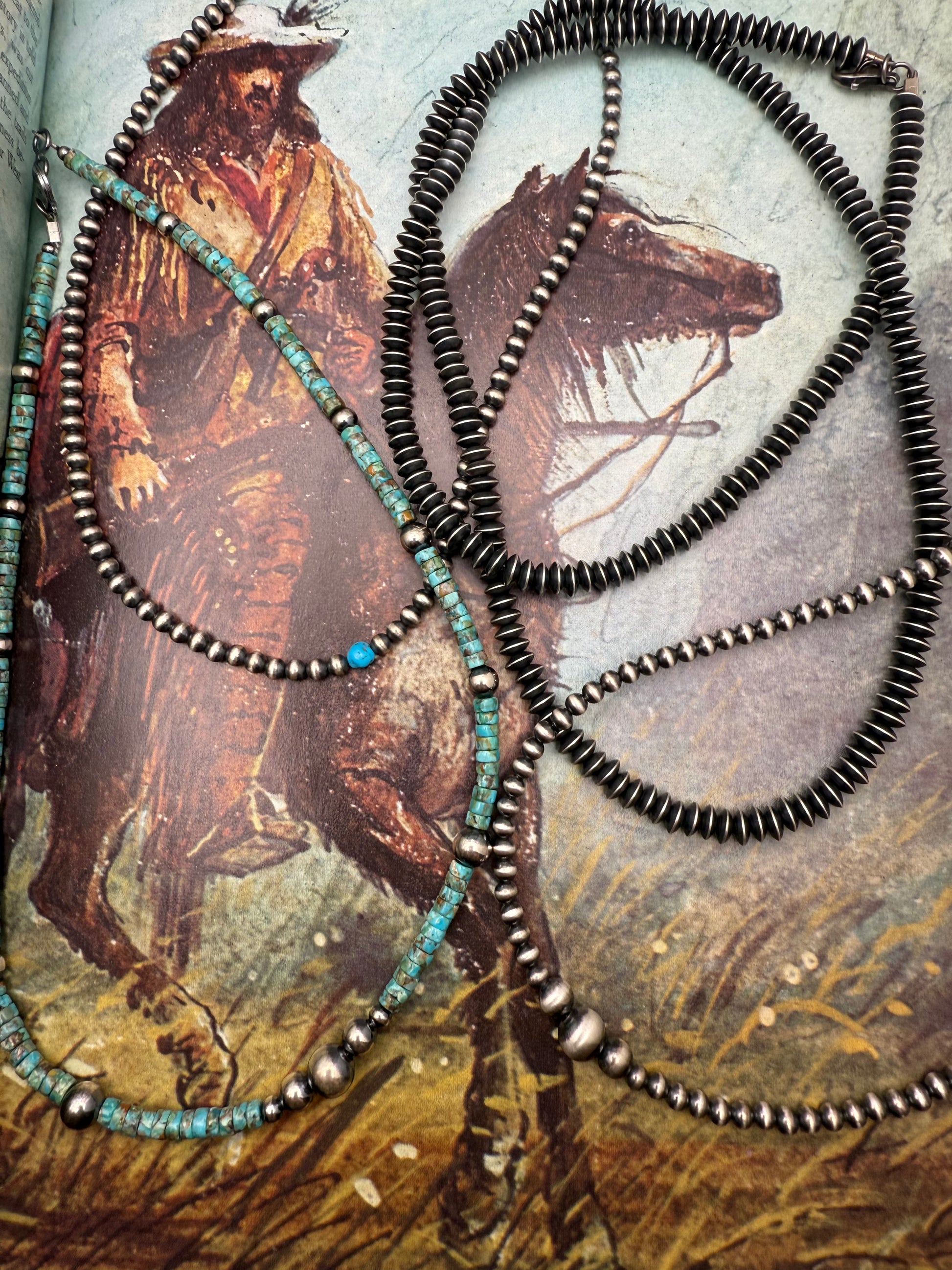 Sterling silver 4mm oxidized pearl beads and turquoise heshi beads hand stung on wire with sterling lobster clasp. Perfect for any of my pendants with larger bales or hooks.